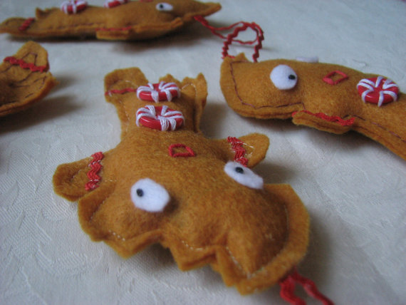 Gingerbread People Ornaments made from Recycled Plastic Bottle Felt