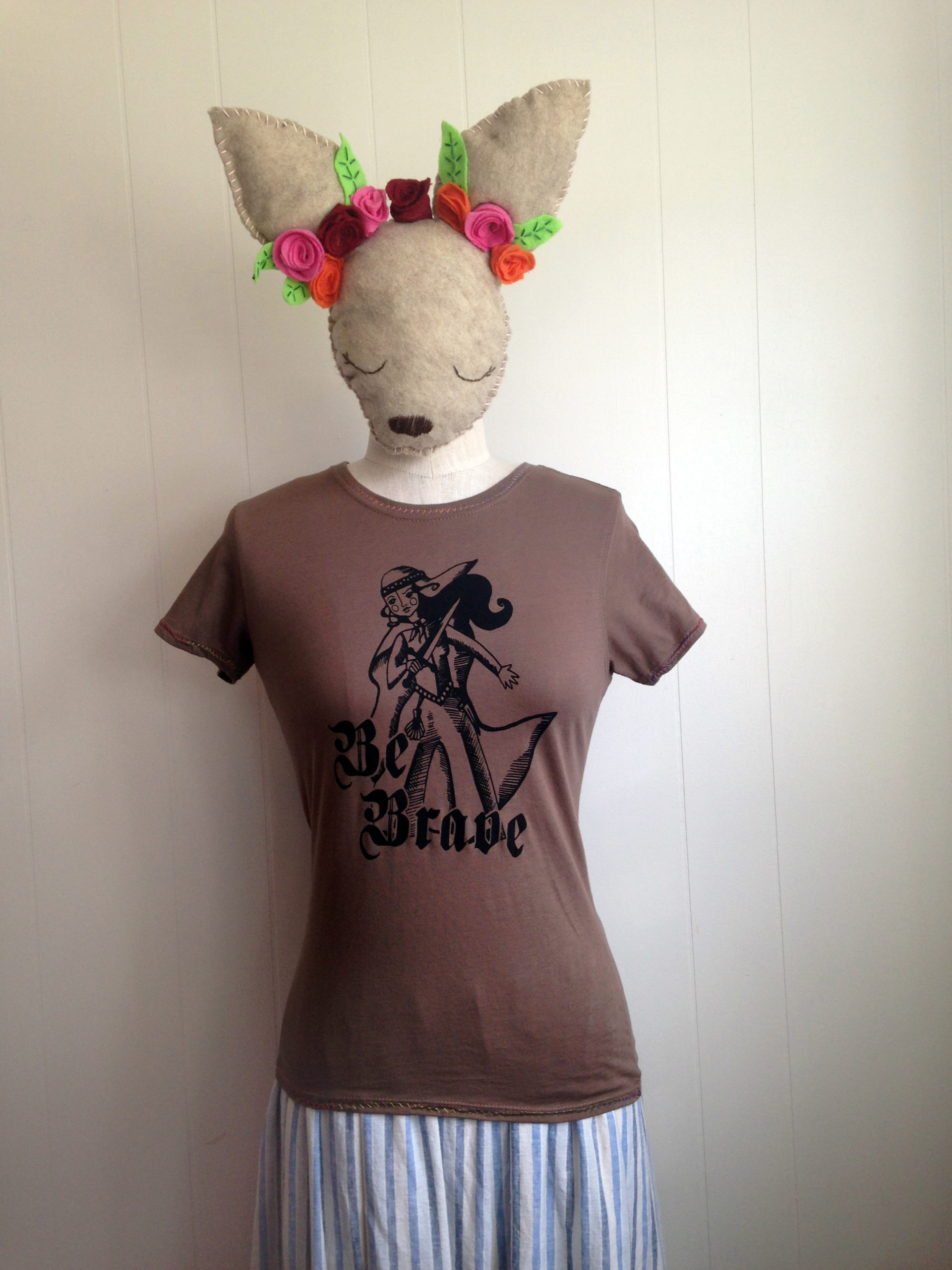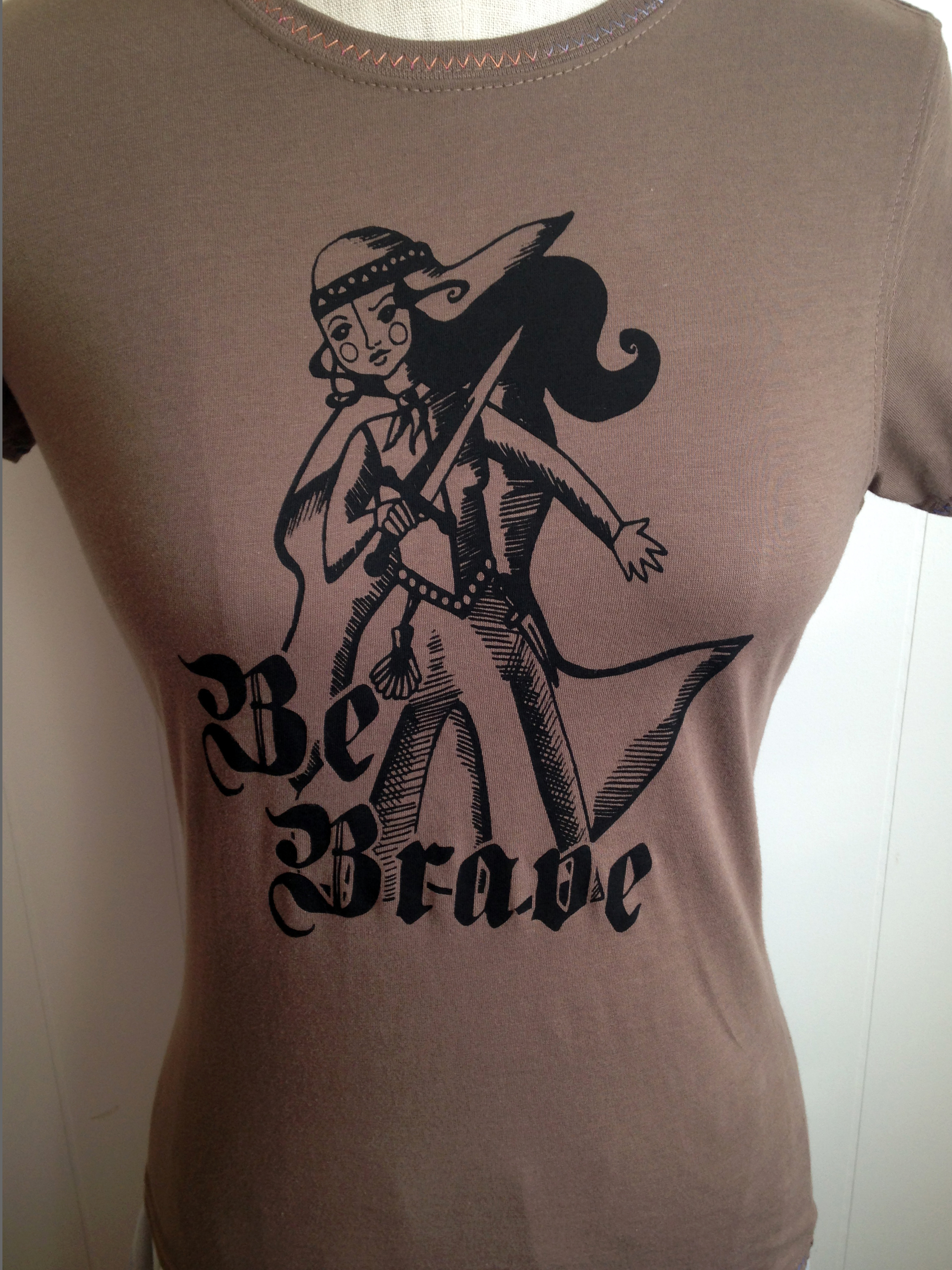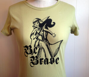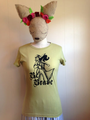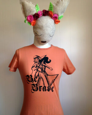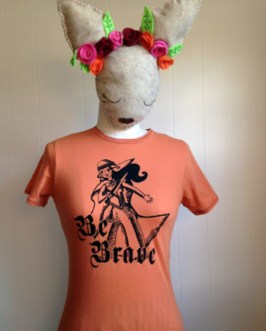 Be Brave is hand printed, on a super soft, 100% organic cotton t-shirt, and sports an amazing Mushpa + Mensa design made using only eco-friendly water based inks. You’re welcome!